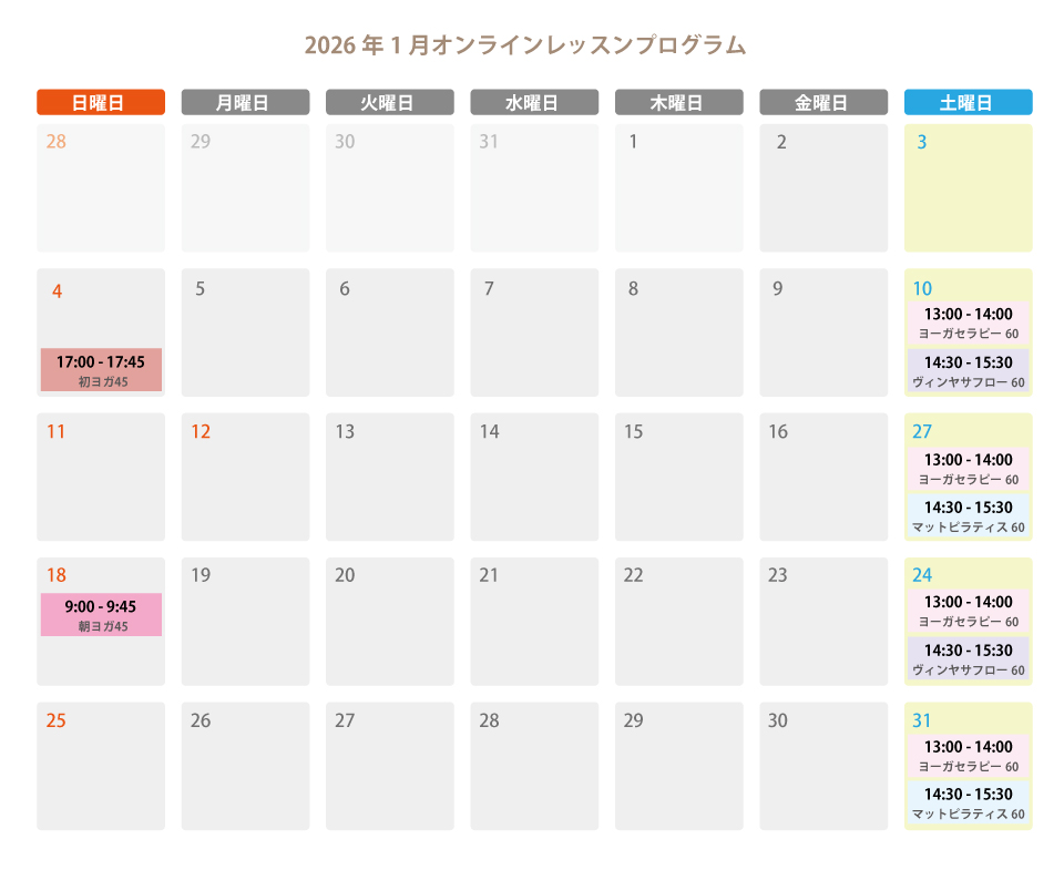 2026年1月分のヨーガセラピー4レッスン/3,300円
